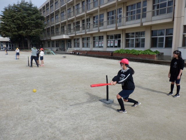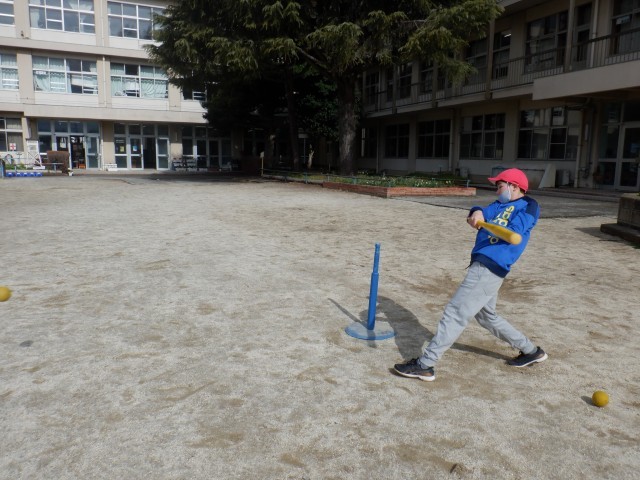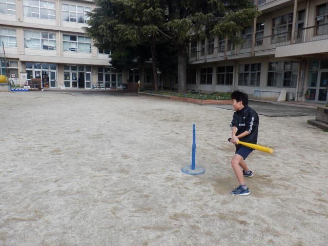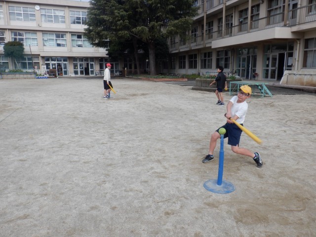 ティーボールのバッティング&守備練習をしていました。バットに当ててかっ飛ばしています。女子は少々遠慮気味でしょうか。ナイスバッティング!