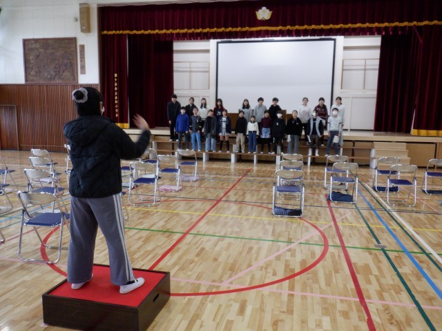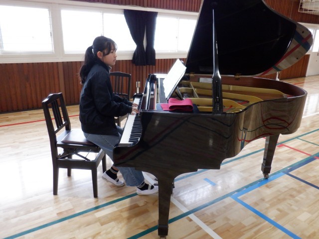 合唱練習が始まりました。指揮者と伴奏者がみんなを引っ張り、少しずつ声が揃っていきそうです。思いをこめて、体育館に歌声を響かせてください!