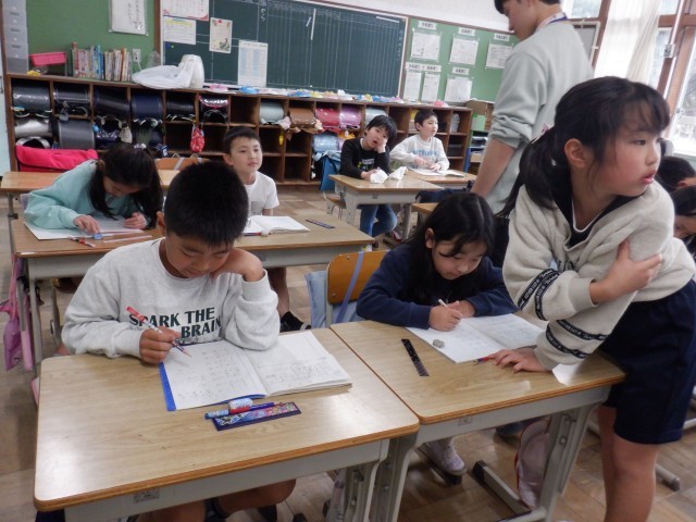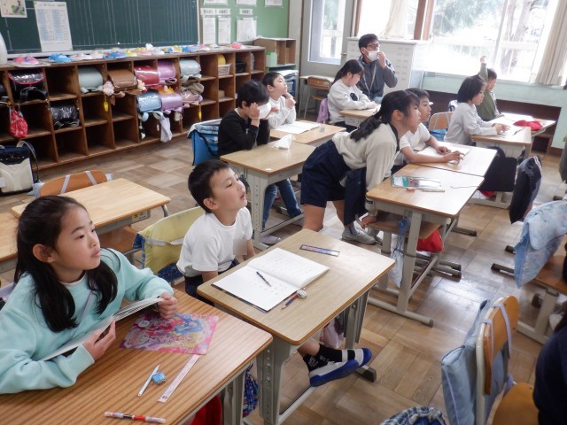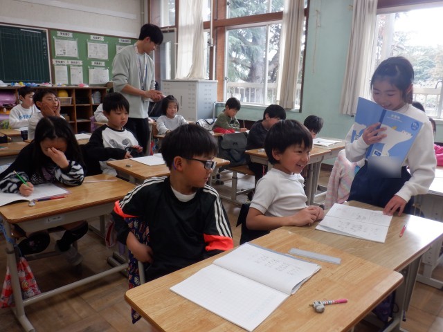 かけ算の学習です。担任の先生と一緒に、楽しく授業をしています。