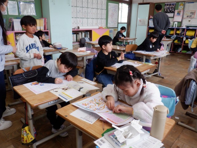 硬筆で書写ノートに字を書いていました。学校生活にも慣れ、4月の進級が楽しみです。