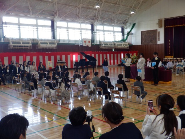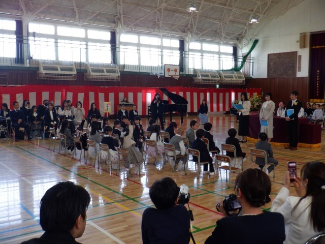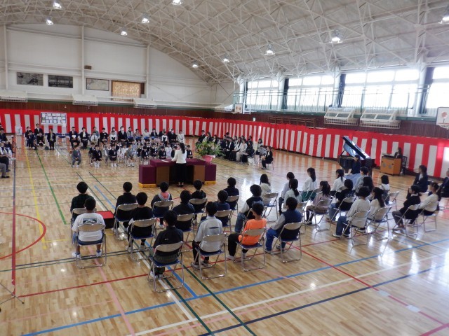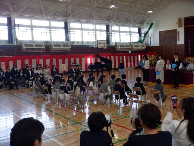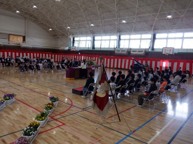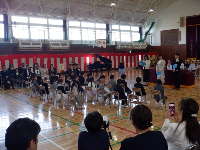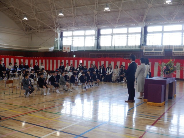 22名のピカピカの1年生を迎え、入学式を実施しました。今年度は芝田市長がご出席くださり、ご挨拶を頂きました。在校生からは、6年生が代表して参加しました。最初の一日を頑張って過ごすことができました。明日からの学校生活がとても楽しみです。