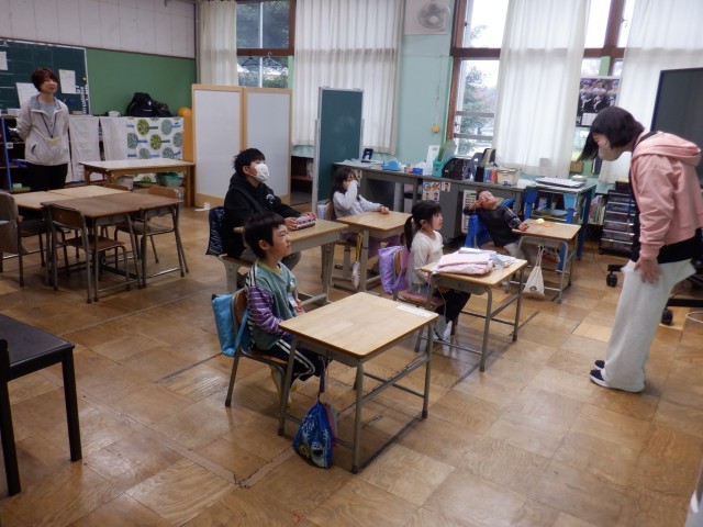 先生の話をよく聞いています。とても落ち着いた雰囲気の教室です。