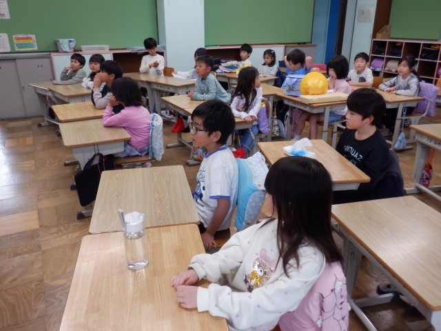 元気よく挨拶し、健康観察をしていました。新しい担任の先生にも慣れてきたようで、「はい、元気です」と明るく言えていました。