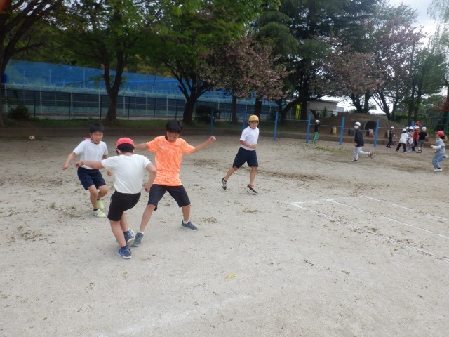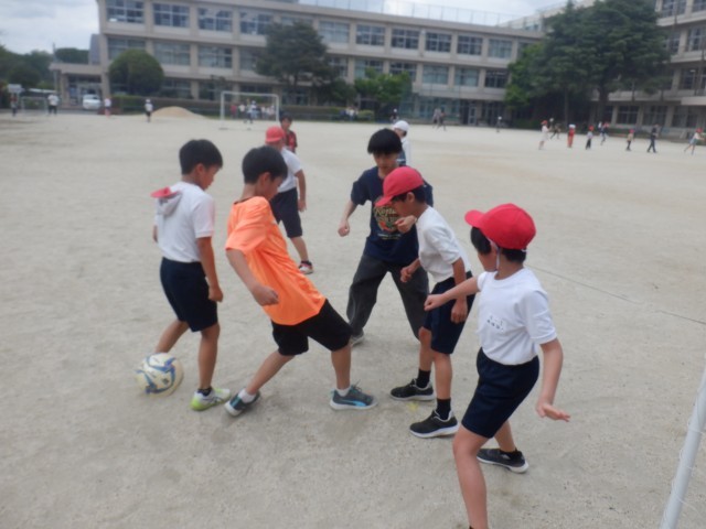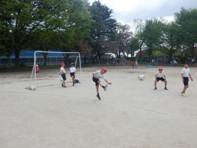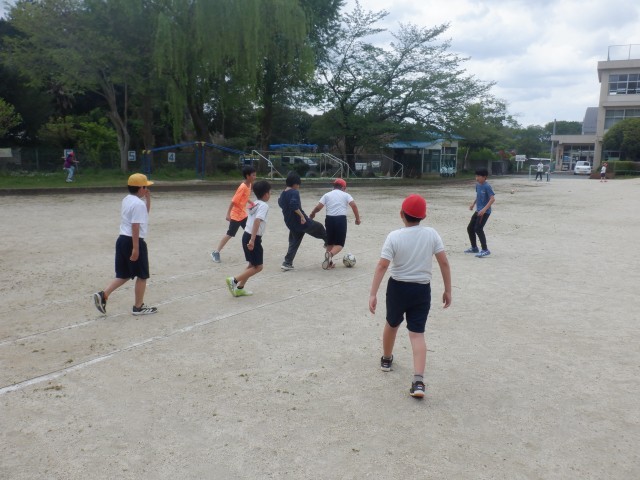 たくさんの子が、校庭で元気に遊んでいました。最近は、一輪車やサッカーが人気です。鬼ごっこやボール投げを楽しむ子もたくさんいました。