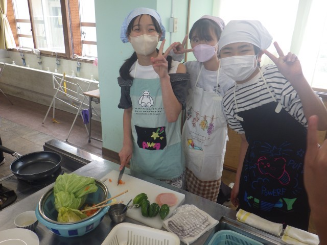 6年生は、家庭科の調理実習で「ハム野菜炒め」をつくりました。