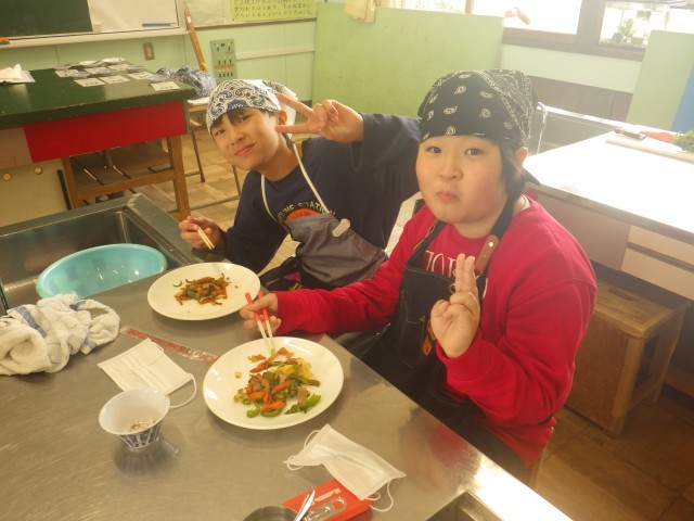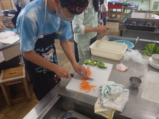 安全に気をつけて、上手に野菜を切って炒め、おいしく食べることができました。