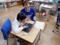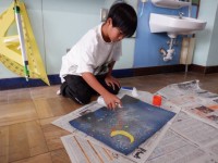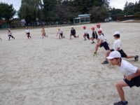 長袖・長ズボンを着てプールに入りました。水中での動きにくさ、泳ぎにくさは予想以上だったようです。ペットボトルを抱え、力を抜いて浮いて待つ救命方法を学びました。