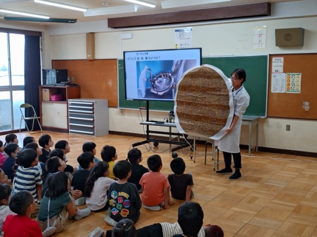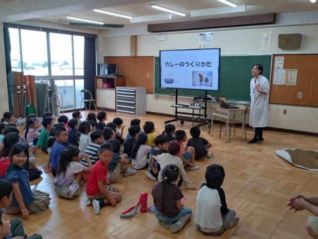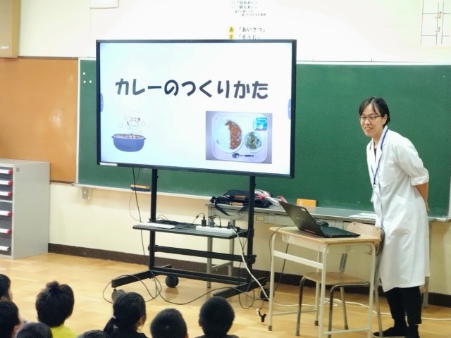 栄養士の渡邉さんに給食のお話をしていただきました。