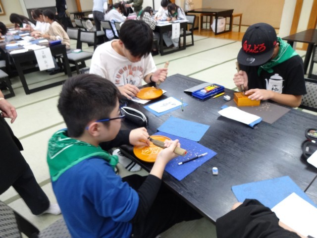 日光彫り体験の様子です。