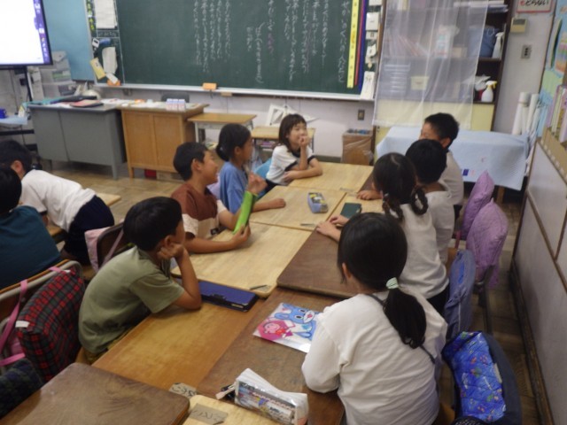 あいにくの雨でしたが、1年生と6年生、2年生と4年生が各教室で交流をしました。