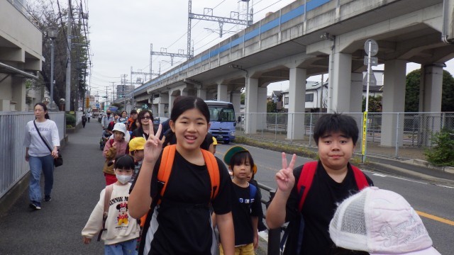 中部小学校は行き帰りとも、なかよし学級みんなで歩きます。