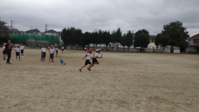 体育ではリレーの練習に取り組みました。