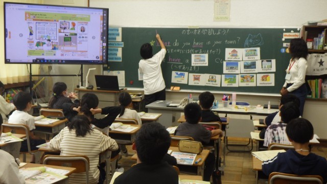 英語では、町の紹介について、英語専科の職員とALTと一緒に学び、算数では、分母が異なる分数同士の足し算について学びました。