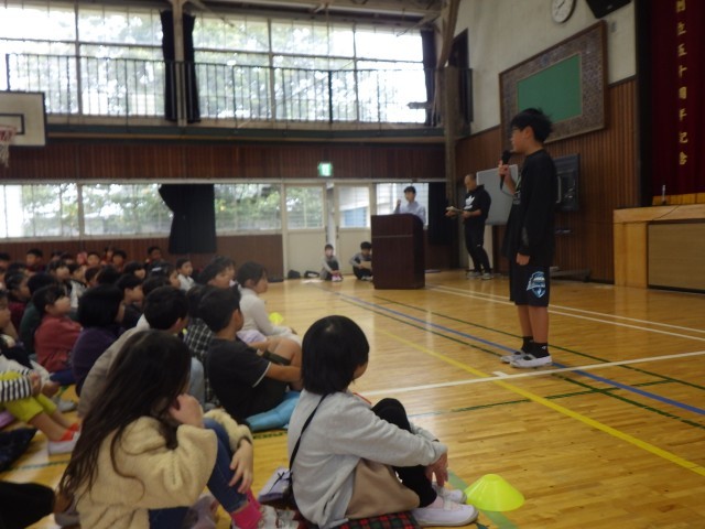 本日は、体育館にて、10月29日に予定されている市内小学校陸上大会の壮行会が開かれました。