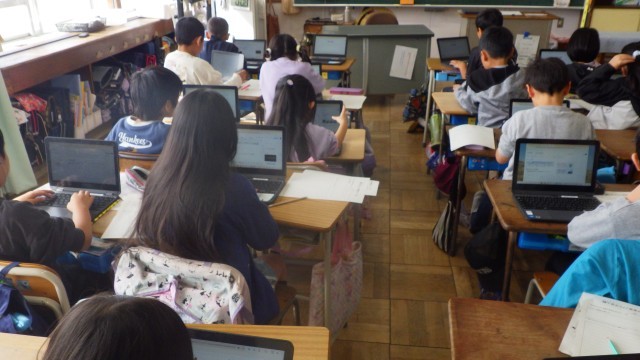 総合では、「かまがや魅力はっけんたい」に取り組んでいます。クロームブックを使って、鎌ケ谷市について調べました。
