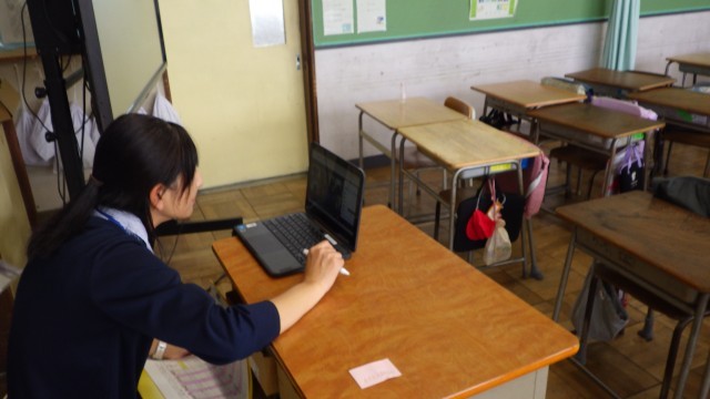 明日まで閉鎖中の学級では、朝の会、帰りの会をオンラインで行い、学習課題に取り組みました。