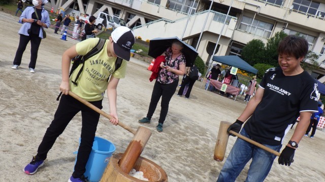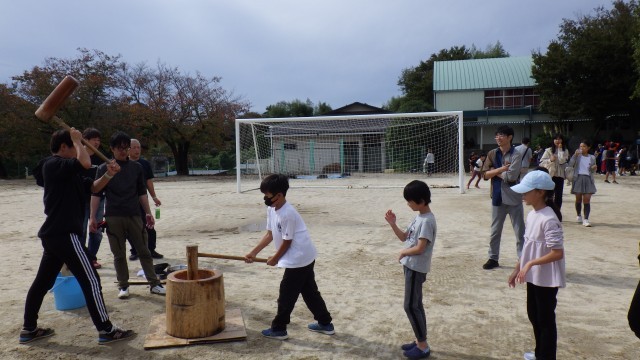 11月1日、第四中学校の校庭で、もちつき大会がありました。
