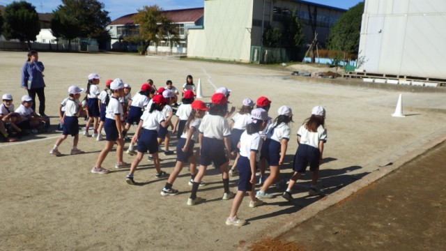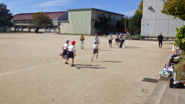 体育では、5年生の協力を得て持久走の記録を取りました。一人一人が自分の力を発揮しました。