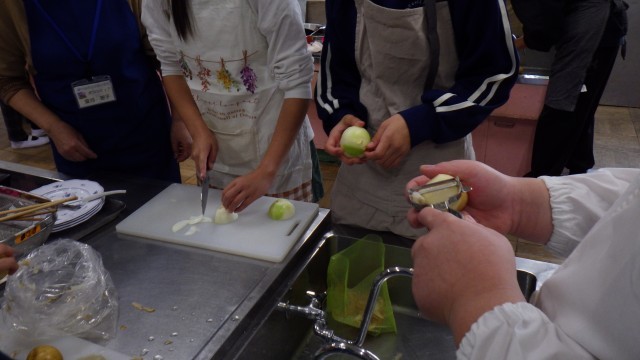みんなの包丁さばきを、じっと見守ってくだいました。
