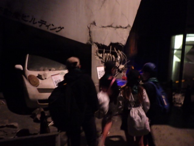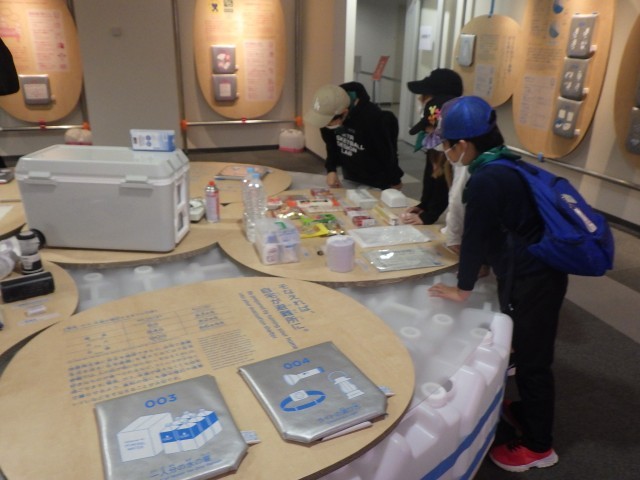 防災に関する展示物を見て学ぶほか、被災地の様子を再現した実物大のジオラマの中で、地震で被災したときの身の守り方について学びました。