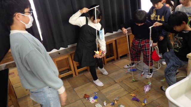 虫や魚の勉強を含んだ、輪投げや釣りを用意して