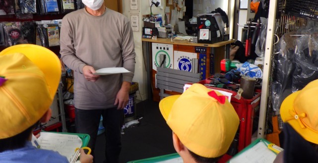 10名程度の小グループに分かれ、調べたいお店や施設に行き、事前に考えた質問について職員の方にインタビューをする学習です。