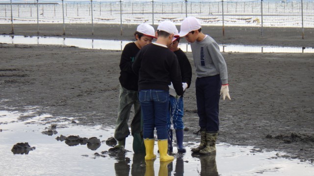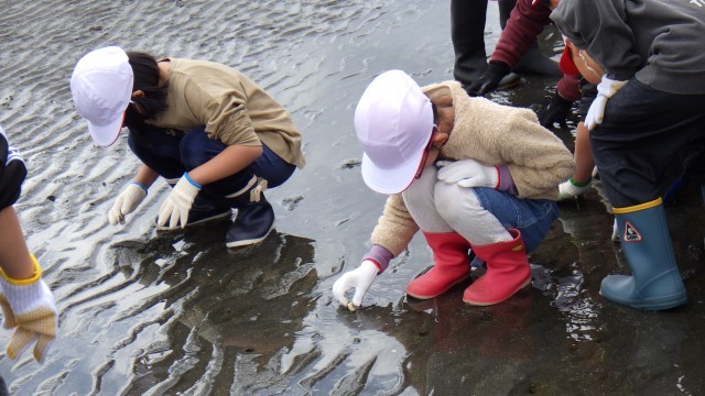 貝やヤドカリを見つけて喜ぶ姿が見られました。