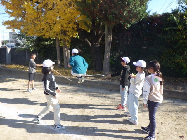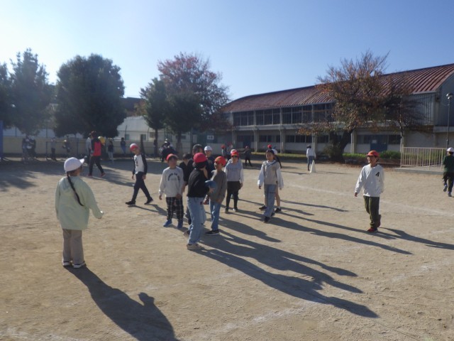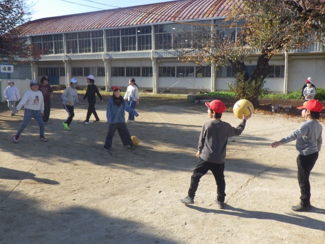 昼休みに校庭で、ドッジボールや鬼ごっこ、長縄跳びなどを通じて仲良く交流ができました。