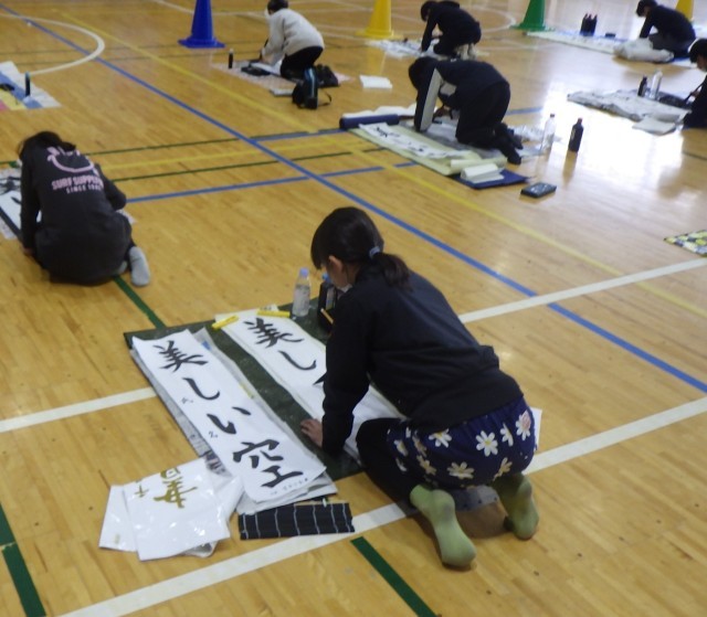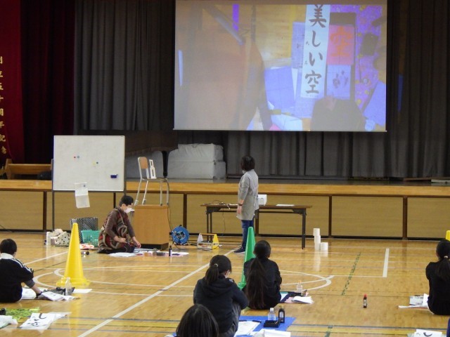 大型スクリーンを使って、講師の先生が実際に書く様子を見ながら、書き方を学びました。