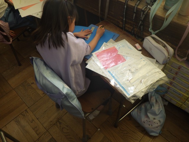 図工では紙工作「まどのあるたてもの」に取り組んでいます。安全に気をつけながらカッターを使って紙を切りました。