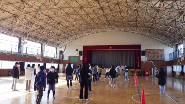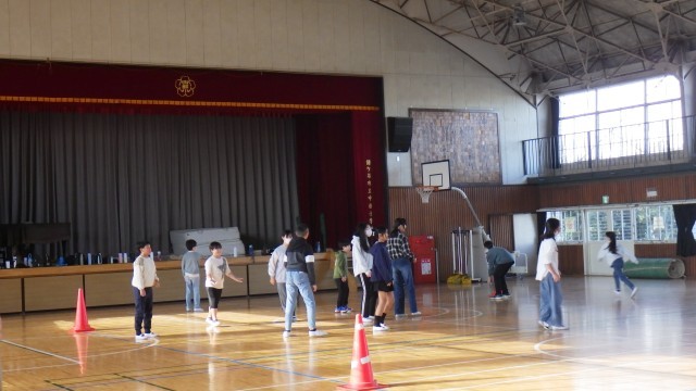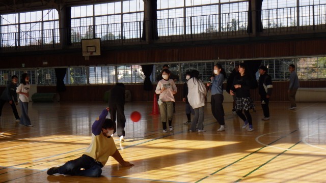 体育館では2学級が、ドッジボールの勝負です。
