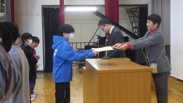 表彰式では、2学期の間に行われたコンクールや大会などで優秀な成績を収めた児童が表彰されました。