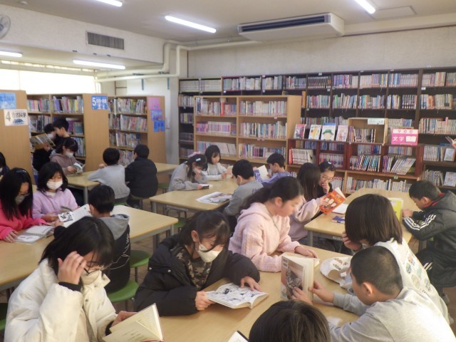 体育では、バレーボールに取り組み、図書の時間には静かに集中して読書に取り組みました。
