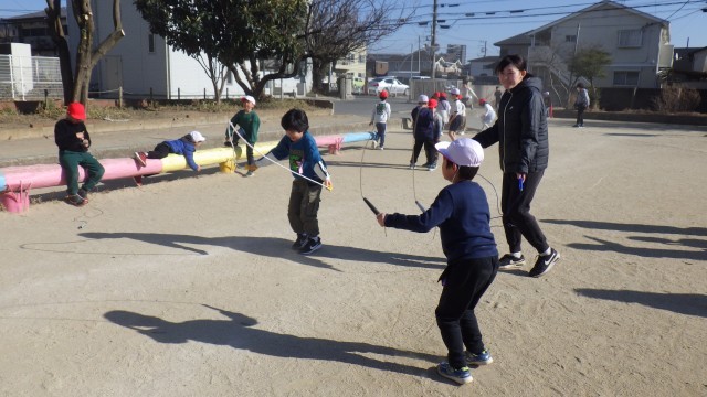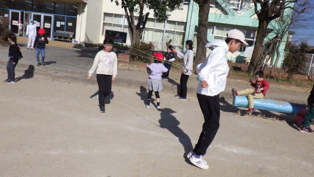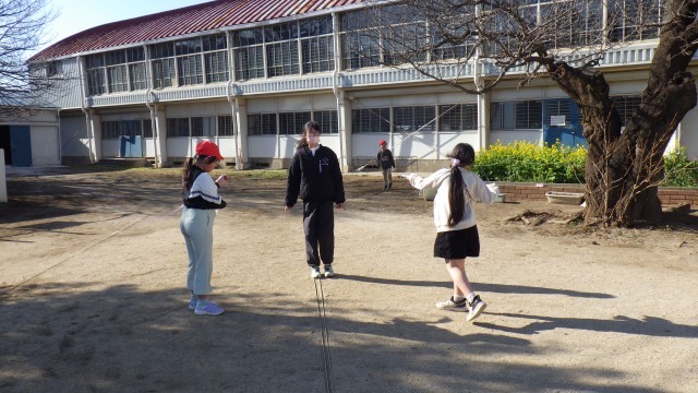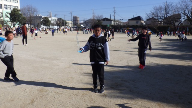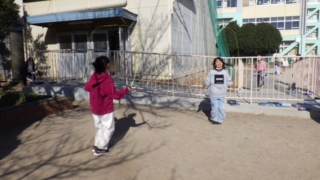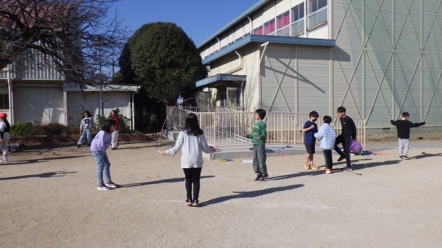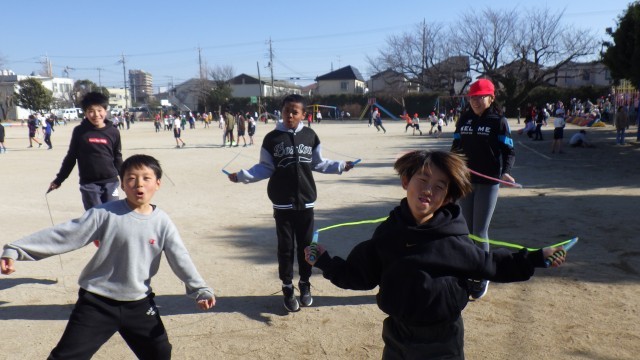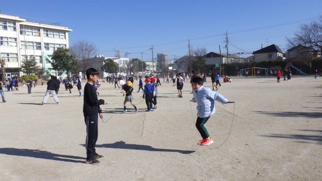 3学期になり、どの学年も体育の学習でなわとびをするようになりました。