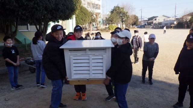 新しい百葉箱は、なんと手作りです。