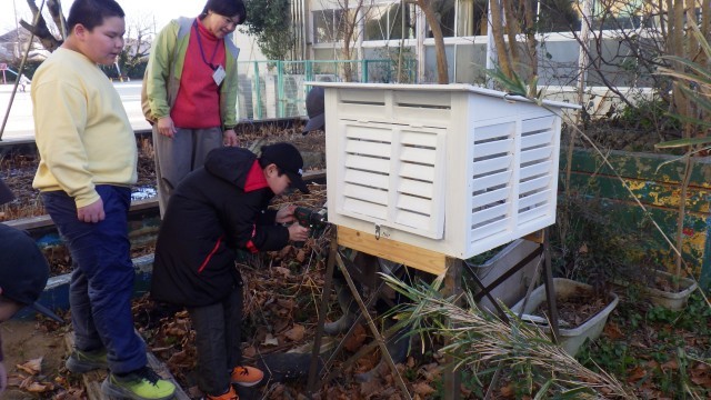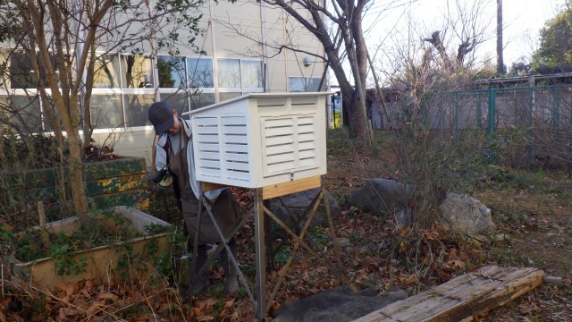 立ち会い、新しい百葉箱を設置しました。