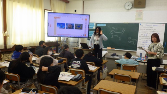 外国語では、自分が行ってみたい日本の名所について友だちと紹介し合いました。