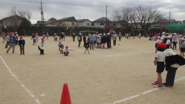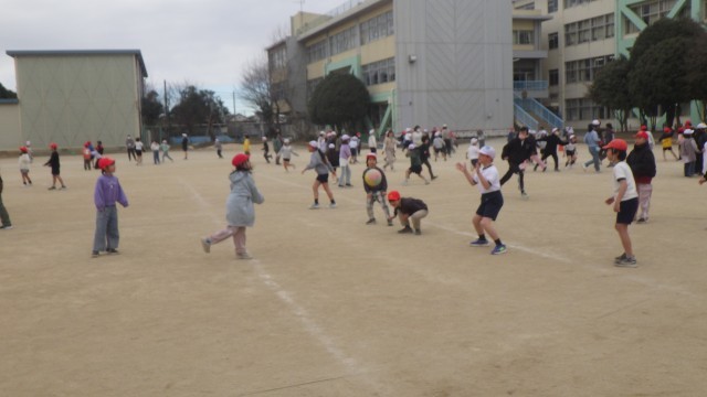 ドッヂボールや長縄跳び、だるまさんが転んだ、鬼ごっこなど、グループごとに楽しんで交流をしました。