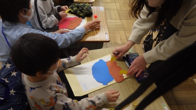 本日、なかよし1組にて生活単元学習の授業研究を行いました。節分について知り、自分の中の「○○おに」を退治しようという授業です。子どもたちから、「なきむしおに」「いらいらおに」「おこりんぼおに」といった意見があり、それぞれの鬼のお面作りをしました。次回の授業で豆まきをして鬼退治をする予定です。今後とも、授業力の向上に努めてまいります。