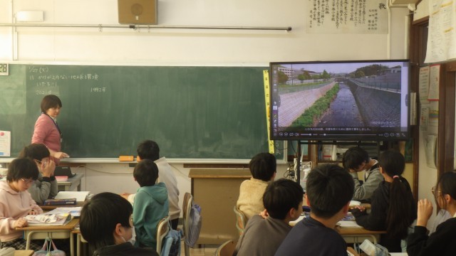 本日の理科は理科室ではなく、教室で行いました。「かけがえのない地球環境」の学習を通じて、環境保護の大切さを学びました。