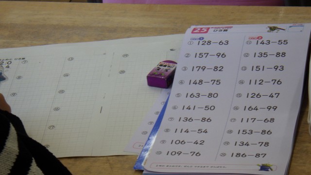 繰り下がりの引き算を復習する子、かけ算をどんどん進める子と