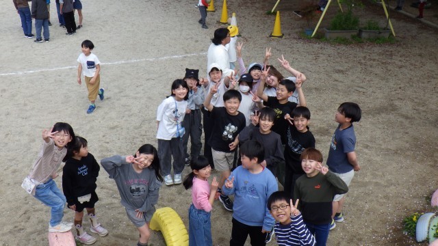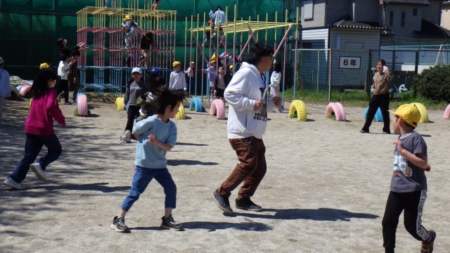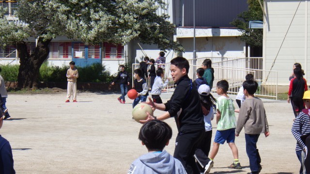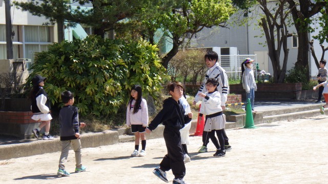 校庭ではたくさんの友達が遊んでいます。
