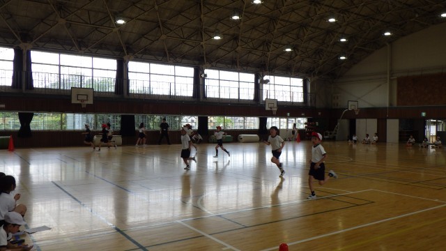 4年生はシャトルランを実施しました。自己記録の更新に向けて、精一杯走っていました。また、友だち同士で応援をする様子も見られ、励まされてより頑張ろうとする姿が見られました。