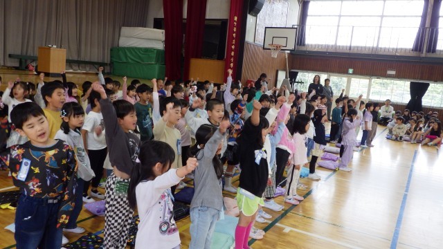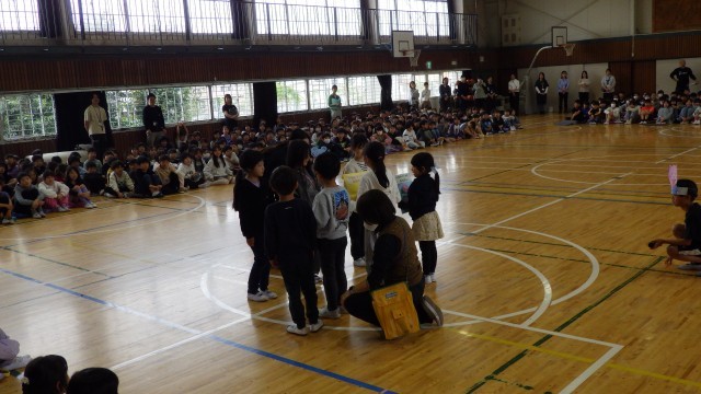 1年生がお礼に歌を歌ってくれました。かわいい歌声が体育館に響きました。
