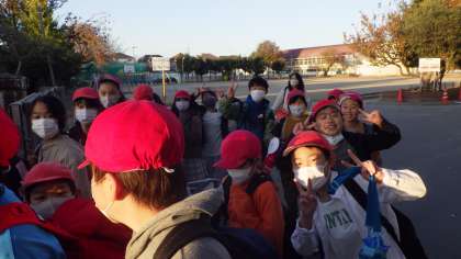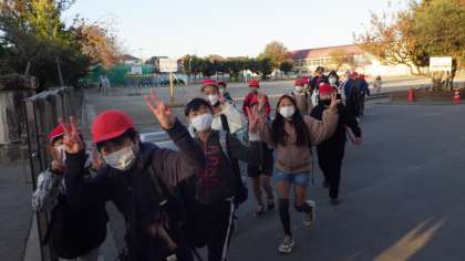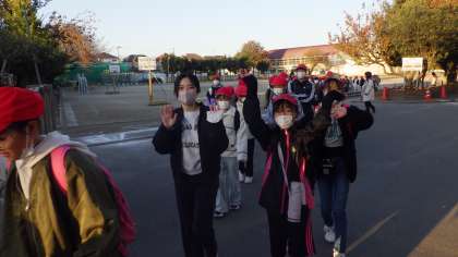 学校を出発して、鎌ケ谷駅前に待機しているバスに向かいます。「行ってらっしゃい!」