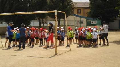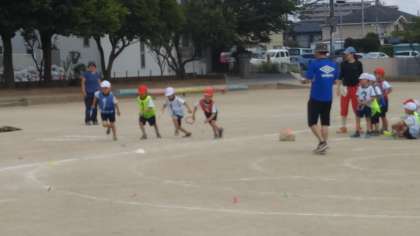 ロング昼休みの時間を利用して、低学年リレーの練習を行っています。