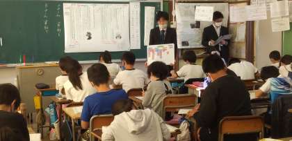 5校時は、5年2組が「国語」の授業で「白神山地についての意見文を書こう」という内容で、酒井康司講師が研究授業を実施しました。