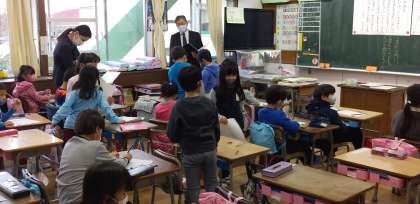 今日は、市教委の新井翔指導主事を講師にお招きして、4校時に1年2組、5校時に6年2組が「国語」の研究授業を行いました。