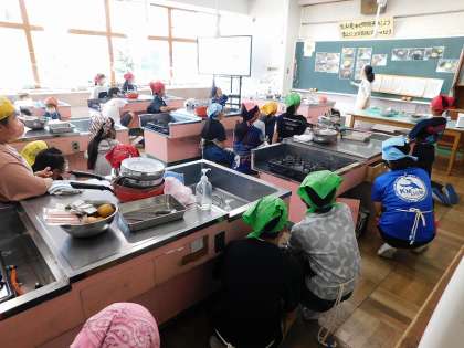 4組は、家庭科の調理実習を行う事前の学習を行っていました。しっかりと話を聞いていないと大きな事故につながるため、ていねいに、厳しく指導していました。