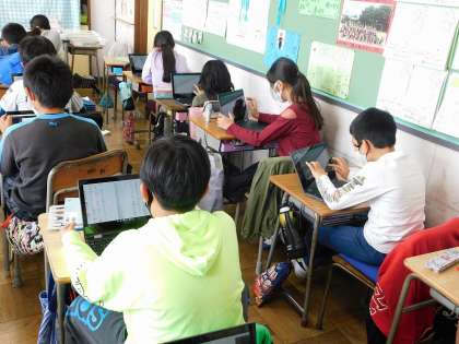 2組の教室に行きました。Chromebookを活用して国語の学習をしていました。よく見ると、本を読んでいました。黙々と読んでいる姿が印象的でした。